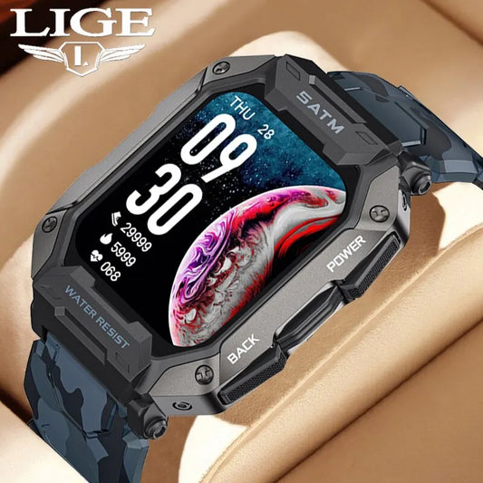 Men's Bluetooth Smartwatch with Full Touch Screen, 5ATM Waterproof, Sports and Fitness Features