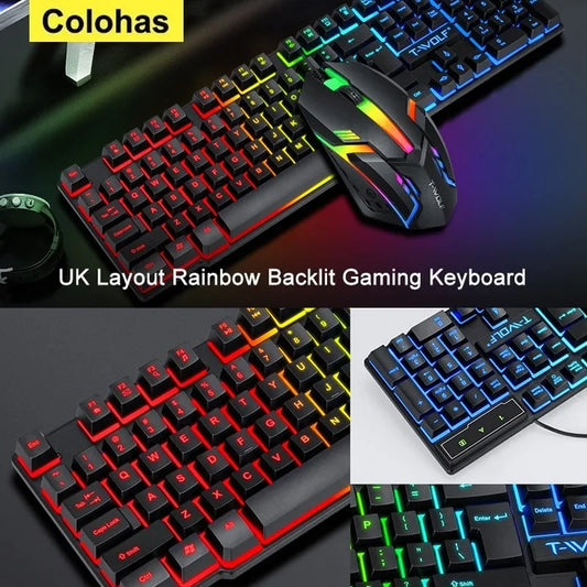 Gaming Keyboard Gamer Keyboard with Backlight USB RGB 104 Rubber Keycaps Wired Ergonomic Russian Keyboard for PC Laptop